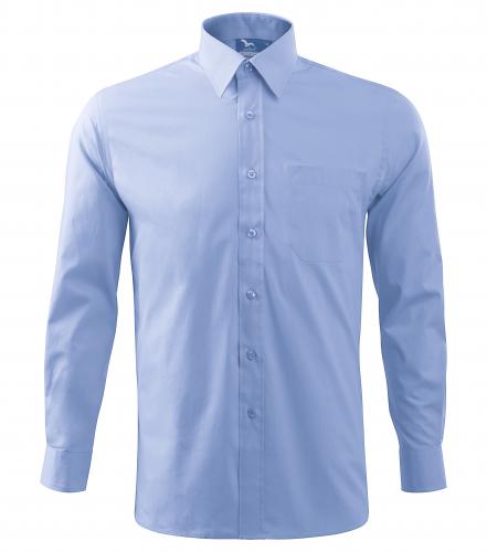 Jó minőségű férfi ing, hosszú ujjal, lágy, nedvességszívó anyagból. Az első rész bal oldalán rávarrt zseb található. Az első rész széle visszahajtással van eltisztázva. Nyomásra és hímzésre alkalmas. Puplin, 100% pamut