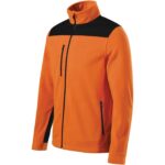 Polár, 100 % poliészter, bolyhosodás ellen kezelve. Kiegészítő anyag: szövött anyag, 100 % polyamid. Hőtartó anyag, vállrészen és könyökén víz- és kopásálló szövet. Beslő nyakszegély saját színű anyagból. Műanyag cipzár teljes hosszban, zsebek műanyag cipzárral. Mandzsettás ujjvégek, alsó szegély elasztikus húzózsinórral, bolyhosodás ellen kezelve mindkét oldalán.