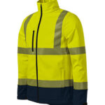 Jólláthatósági Softshell ruházat két színű kivitelben, 3-régetű softshell membránnal, vízálló, lélegző, fluoreszkáló anyag, szegmentált fényvisszaverő szalagok, egyrétegű hátsó rész, fordított cipzár teljes hosszban állvédővel. Állítható ujjvégek tépőzárral, rejtett zsebek fordított cipzárral, mellzsebek, belső mellzseb hozzáféréssel az emblémázáshoz. Ívelt, hátul kissé hosszított alj, alsó szegély elasztikus húzózsinórral, akasztó. Belső polár bolyhosodás ellen kezelve. Softshell: 100 % poliészter