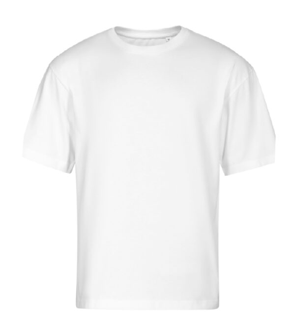 Laza szabású, túlméretezett, lezser, Single Jersey, 100 % pamut unisex póló. Túlméretezett szabás oldalvarrásokkal a divatos fiataloknak.