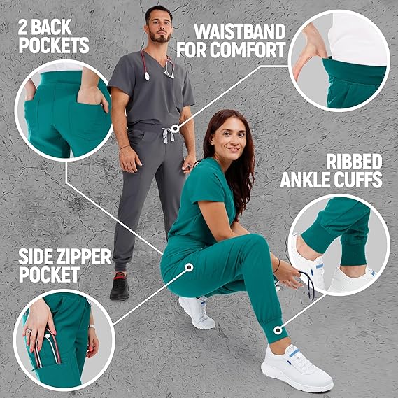 Ideális orvosok, ápolók, laboránsok, gyógyszerészek és egyéb egészségügyi dolgozók számára, akik kényelmes, sportos megjelenésű munkanadrágot keresnek aktív munkavégzéshez.